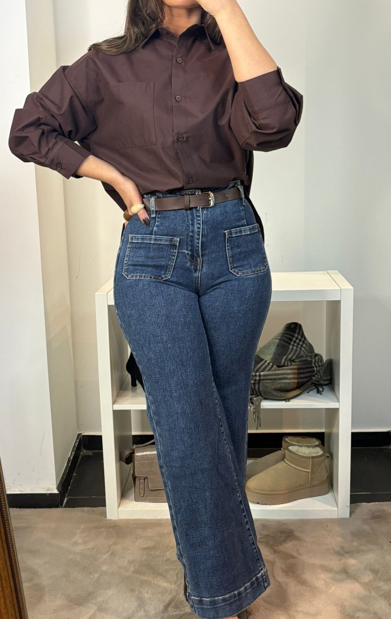 Jeans taille haute avec ceinture inclus.