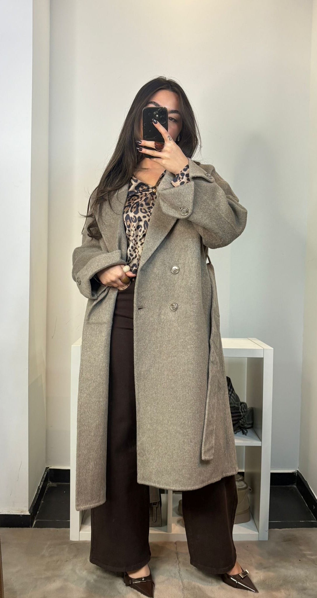 Manteau en laine avec ceinture et coupe oversize.