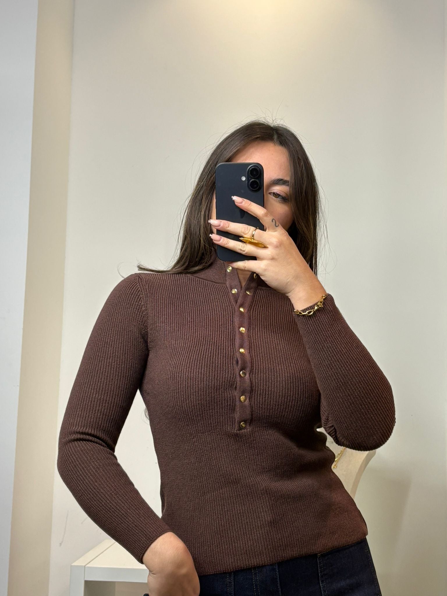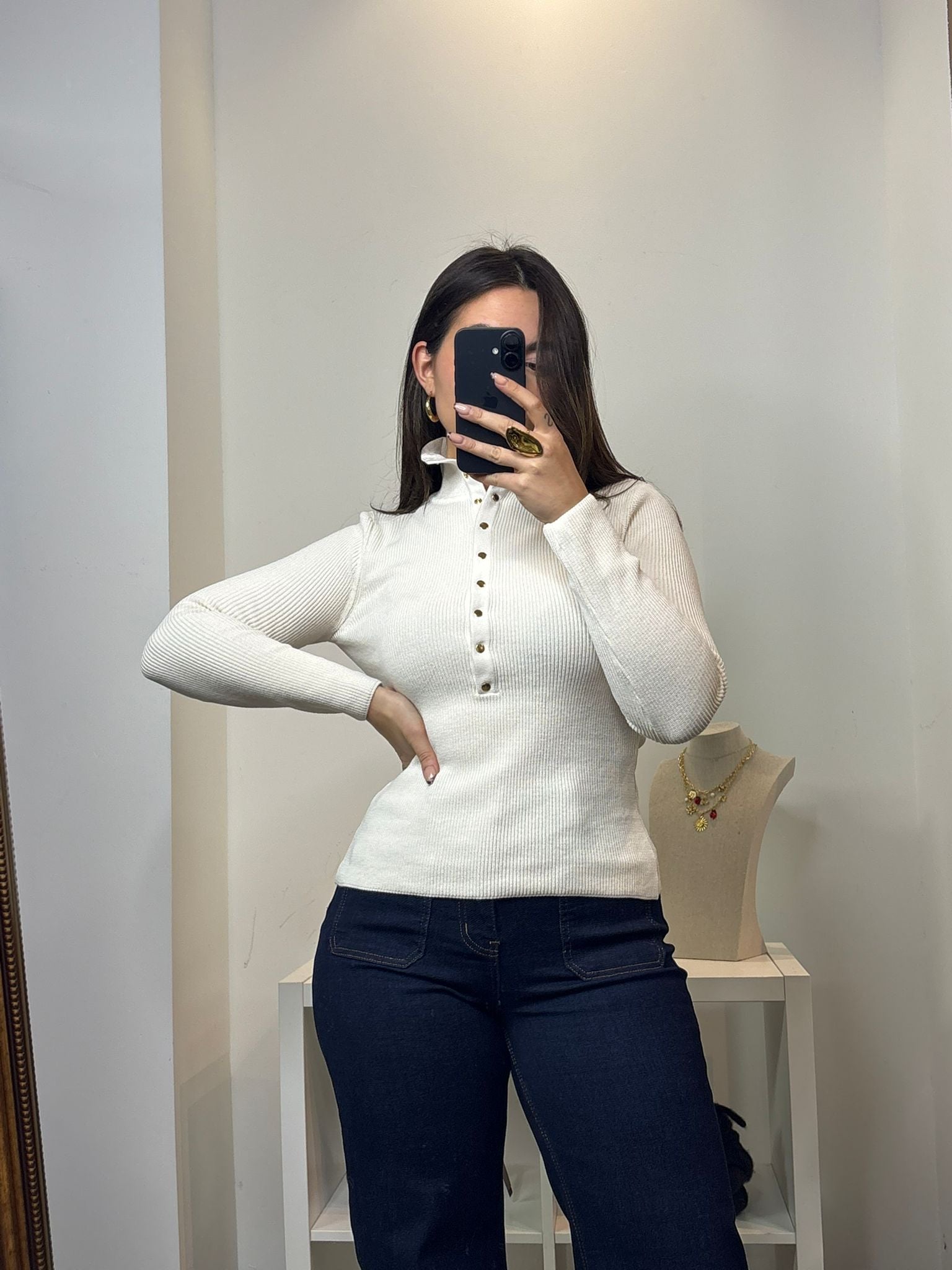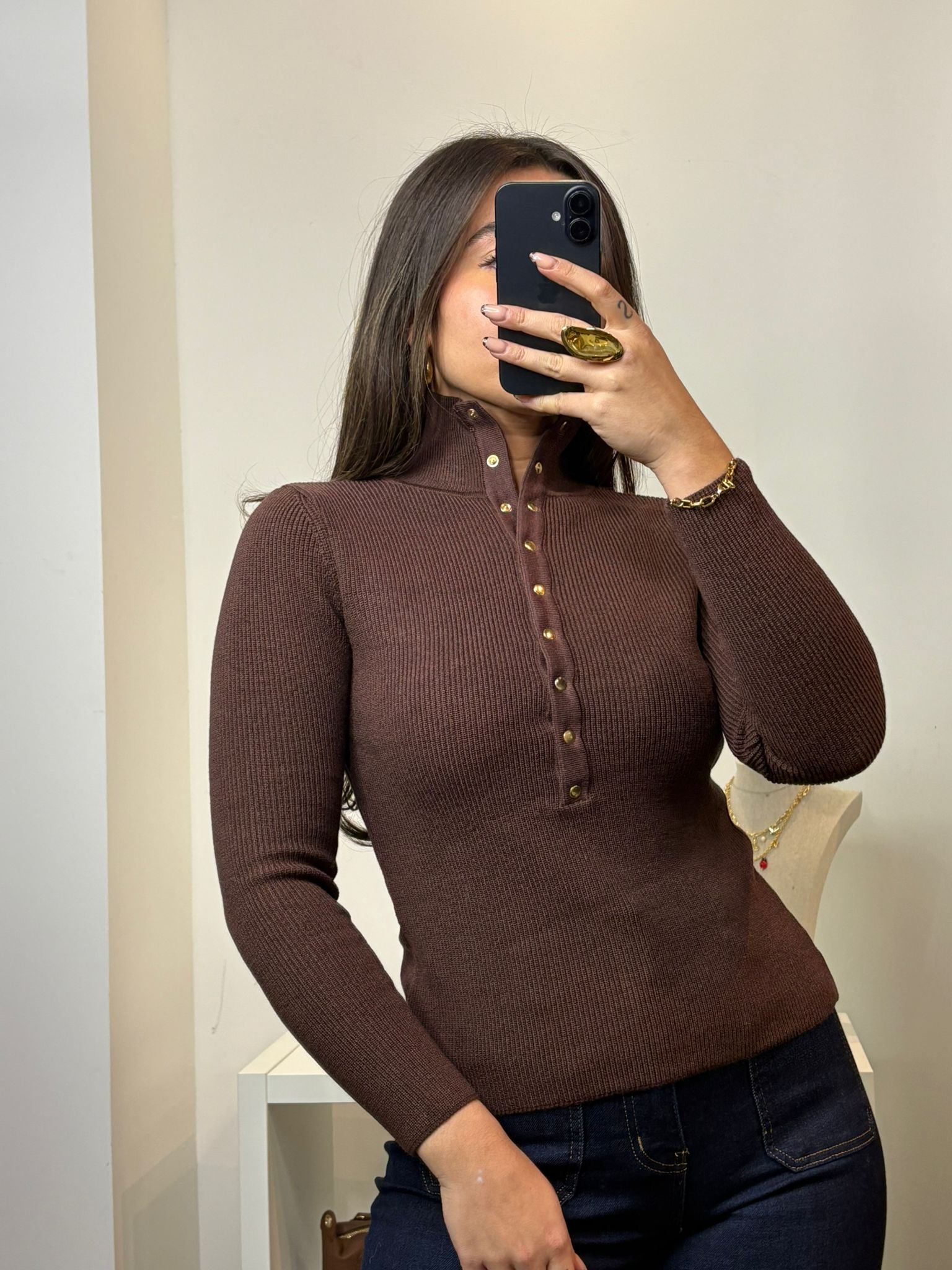 Pull avec bouton dorés. Col roulé et où polo style.